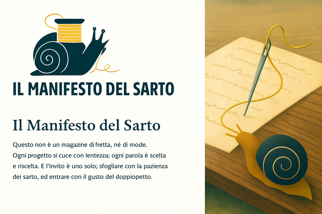 Il Sarto delle Lumache nasce dalla necessità di rallentare. In un mondo che corre, noi scegliamo di cucire. Ogni parola pubblicata è frutto di selezione, visione e rispetto. Ogni autore è scelto per la sua voce, non per la sua velocità. Ogni racconto è un capo su misura, pensato per durare.